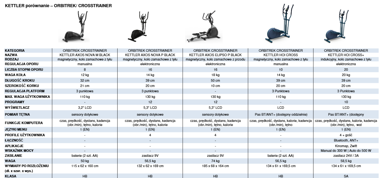 Porównanie orbitreków (crosstrainerów) KETTLER
