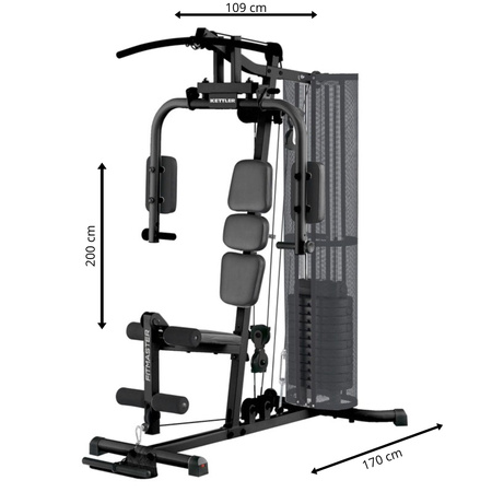 • Ćwiczone partie mięśni: barki, klatka piersiowa, plecy, nogi, brzuch, ramiona