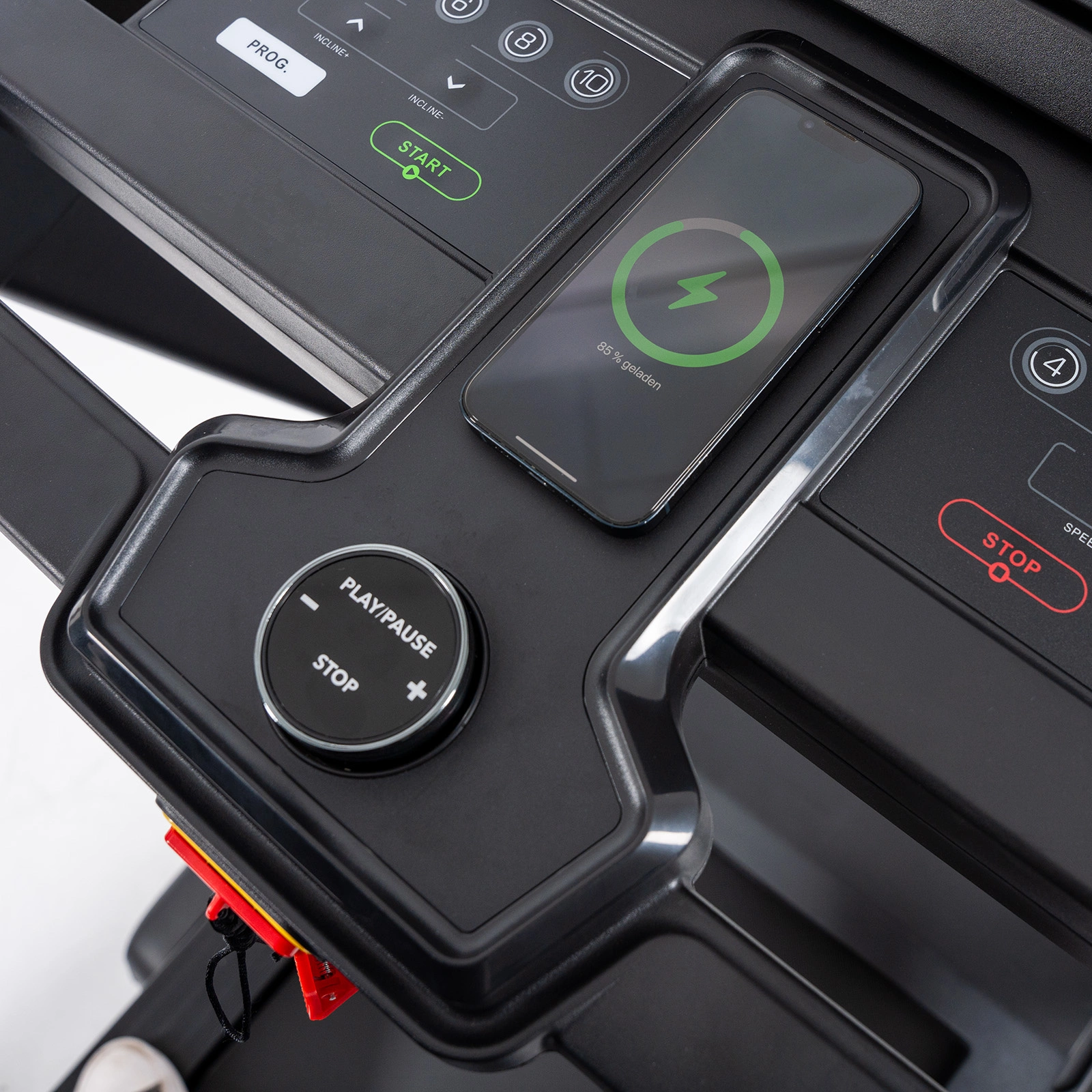 Bieżnia Kettler Track 400 została wyposażona w czytelny ekran LCD, który wyświetla wszystkie najważniejsze parametry treningu. Dodatkowo posiada:- funkcję ładowania bezprzewodowego dla kompatybilnych smartfonów