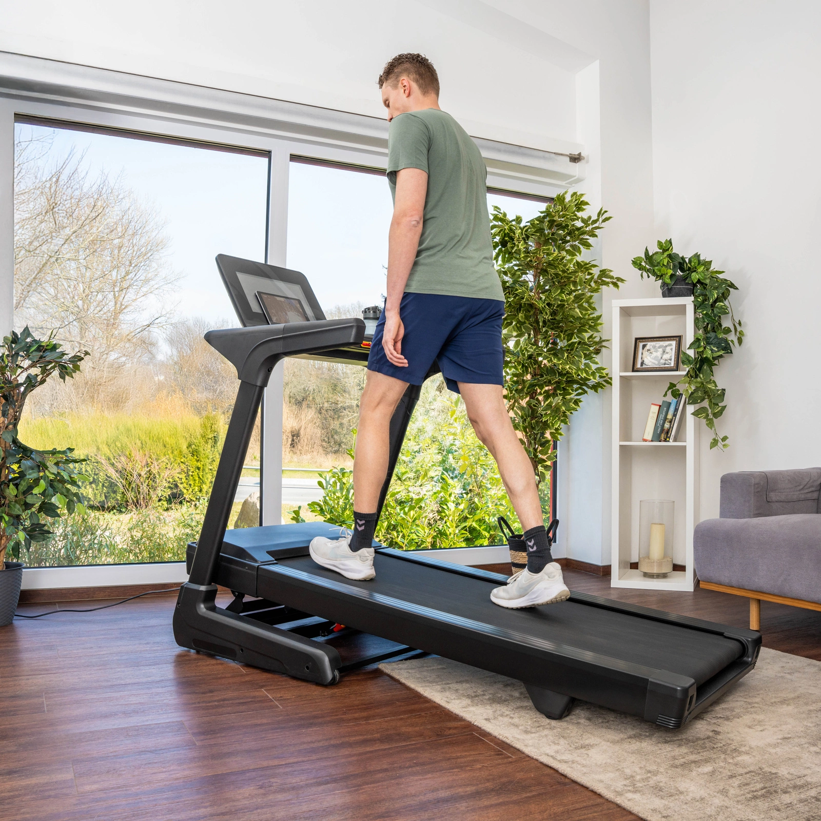 Silnik DC o mocy 3 KM gwarantuje płynną i cichą pracę, a prędkość regulowana w zakresie 0,8 - 20 km/h sprawia, że bieżnia sprawdzi się zarówno do marszu, jak i do intensywnego biegania. Szeroki pas biegowy 150 x 51 cm oraz amortyzacja dbają o komfort stawów i bezpieczeństwo podczas treningu. Bieżnia elektryczna jest przeznaczona dla osób o wadze do 150 kg. Urządzenie należy do klasy H, co oznacza, że jest to profesjonalna bieżnia domowa, stworzona do regularnego użytku w warunkach domowych.Dzięki połączeniu nowoczesnych technologii, wygodnej konsoli, szerokiego zakresu programów oraz solidnej konstrukcji, bieżnia składana KETTLER TRACK 600 to doskonały wybór dla osób szukających niezawodnej bieżni do chodzenia i biegania w domu.