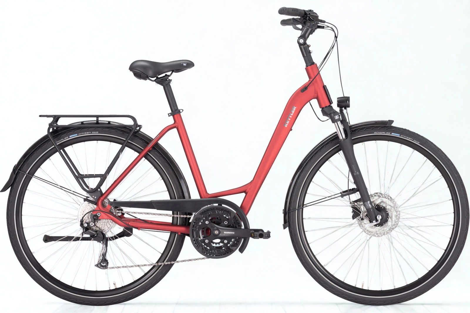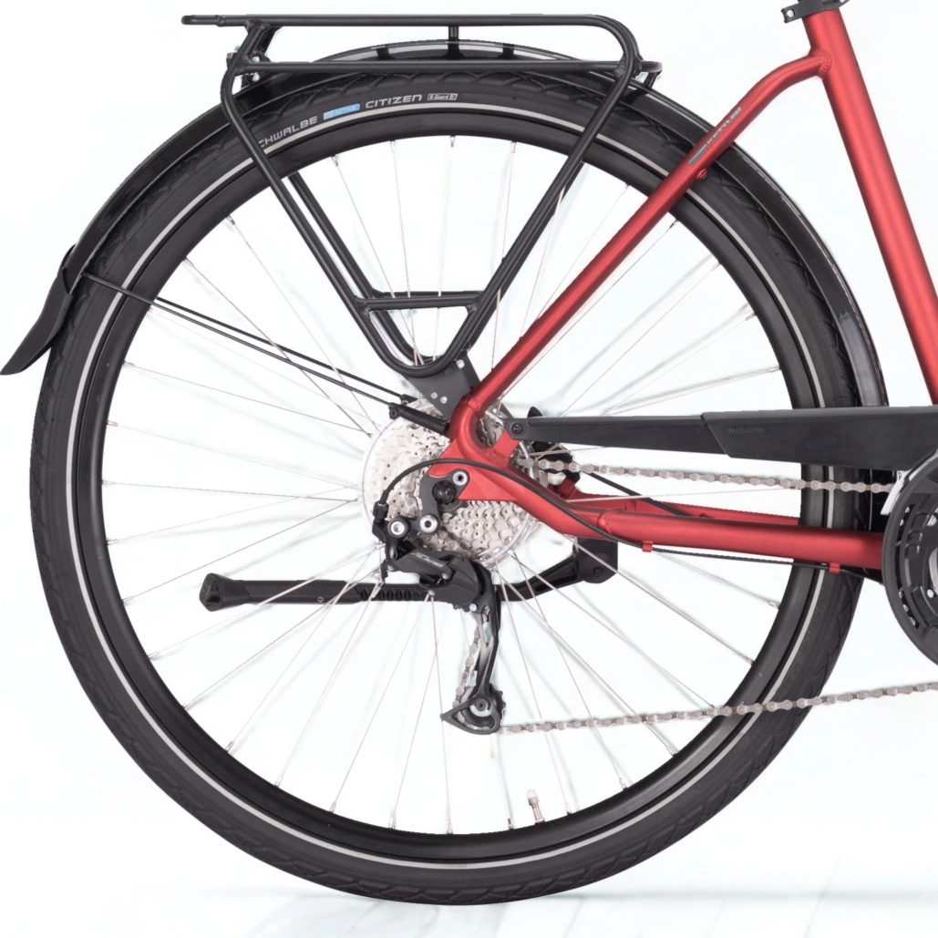 Przemyślana geometria ramy zapewnia wygodną, wyprostowaną pozycję jazdy, a bogate wyposażenie – w tym oświetlenie w piaście, bagażnik MonkeyLoad, hamulce tarczowe i możliwość montażu przedniego kosza QUADRIGA – gwarantuje komfort i bezpieczeństwo w każdych warunkach.
