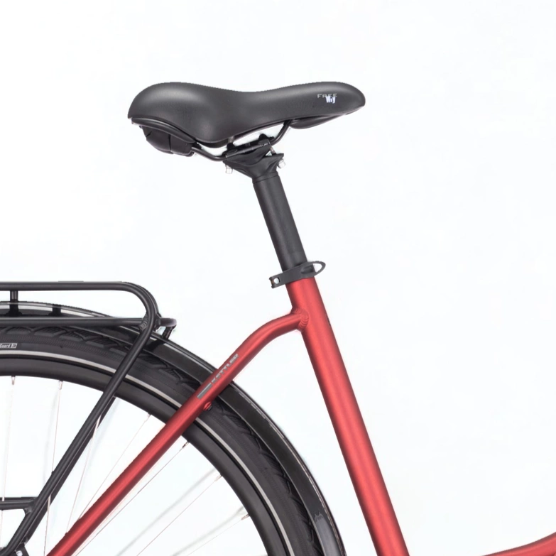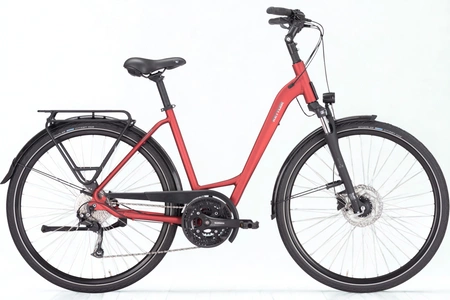 Rower sprawdzi się świetnie w miejskim ruchu dzięki wyprostowanej pozycji, pewnemu prowadzeniu i osprzętowi (oświetlenie, błotniki, hamulce tarczowe) zapewniającemu bezpieczeństwo.