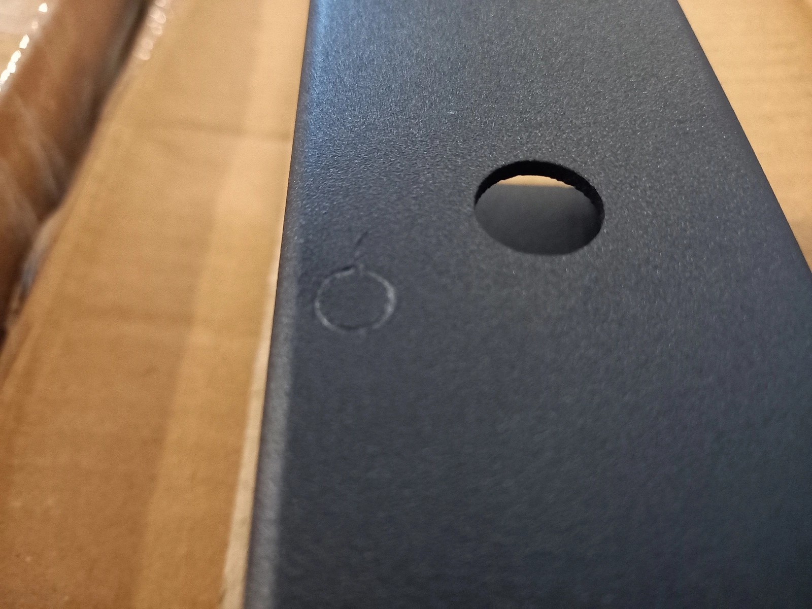 - Opis: Produkt pochodzi ze zwrotu magazynowego. Na jednym ramieniu widoczna jest produkcyjna próba wykonania otworu w niewłaściwym miejscu, niemające wpływu na funkcjonalność zestawu. Elementy montażowe są w opakowaniu zastępczym.