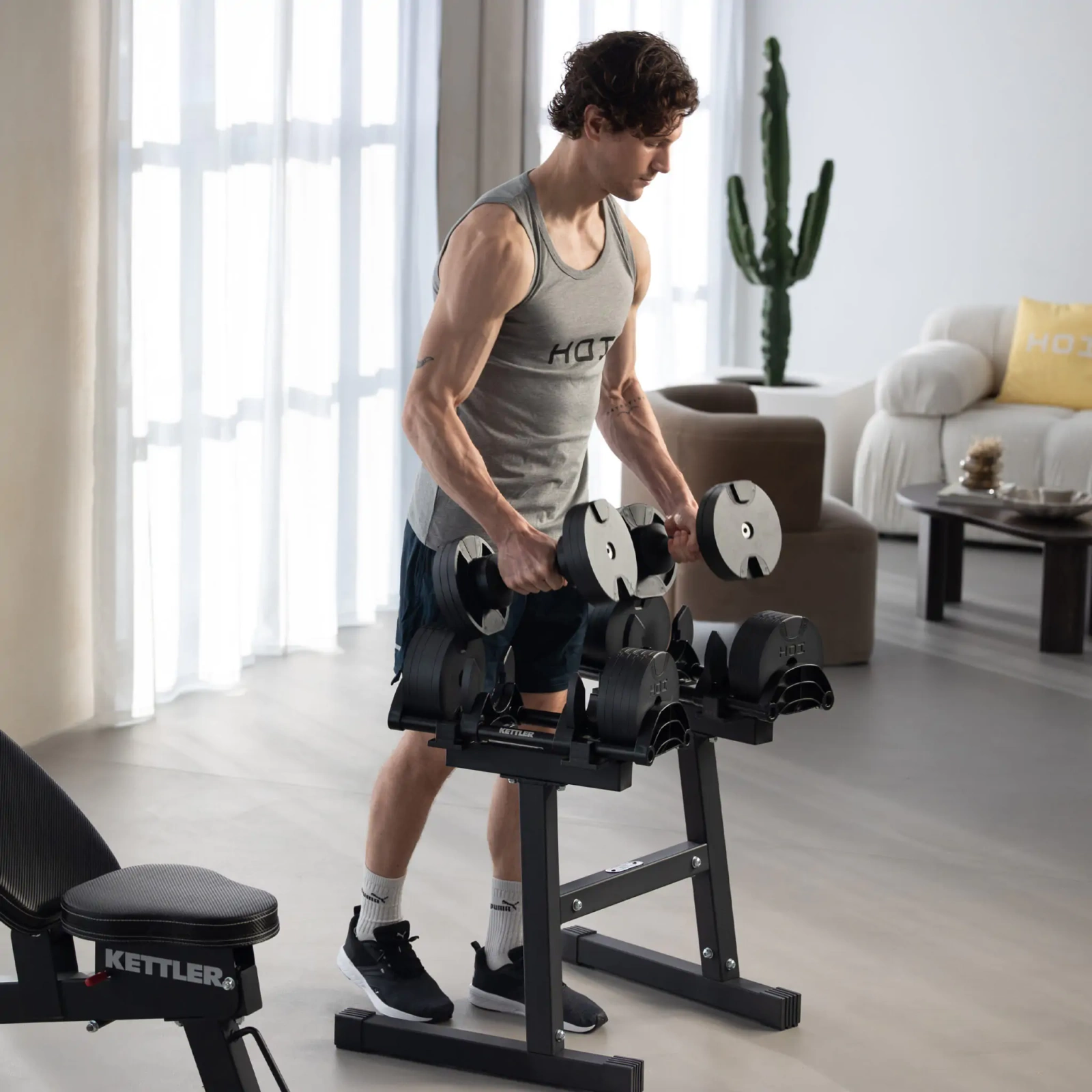 Stojak KETTLER HOI Vario Stand to idealne uzupełnienie zestawu regulowanych hantli HOI Vario 220 i 232. Jego konstrukcja zapewnia stabilność i łatwy dostęp do sprzętu, a także porządek w domowej siłowni.