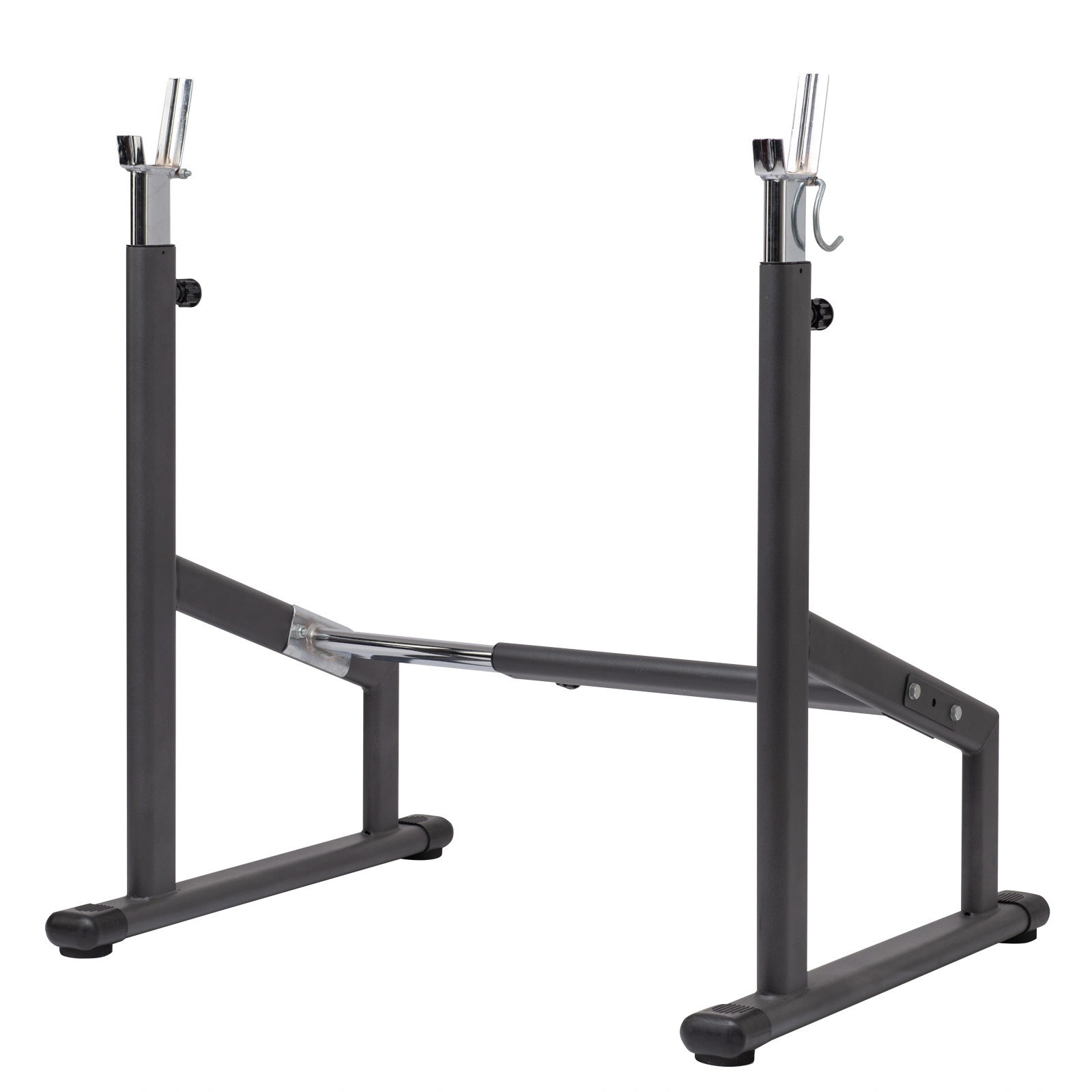 - Dodatkowe haki bezpieczeństwa - zabezpieczają sztangę przed przypadkowym zsunięciem się z uchwytów.