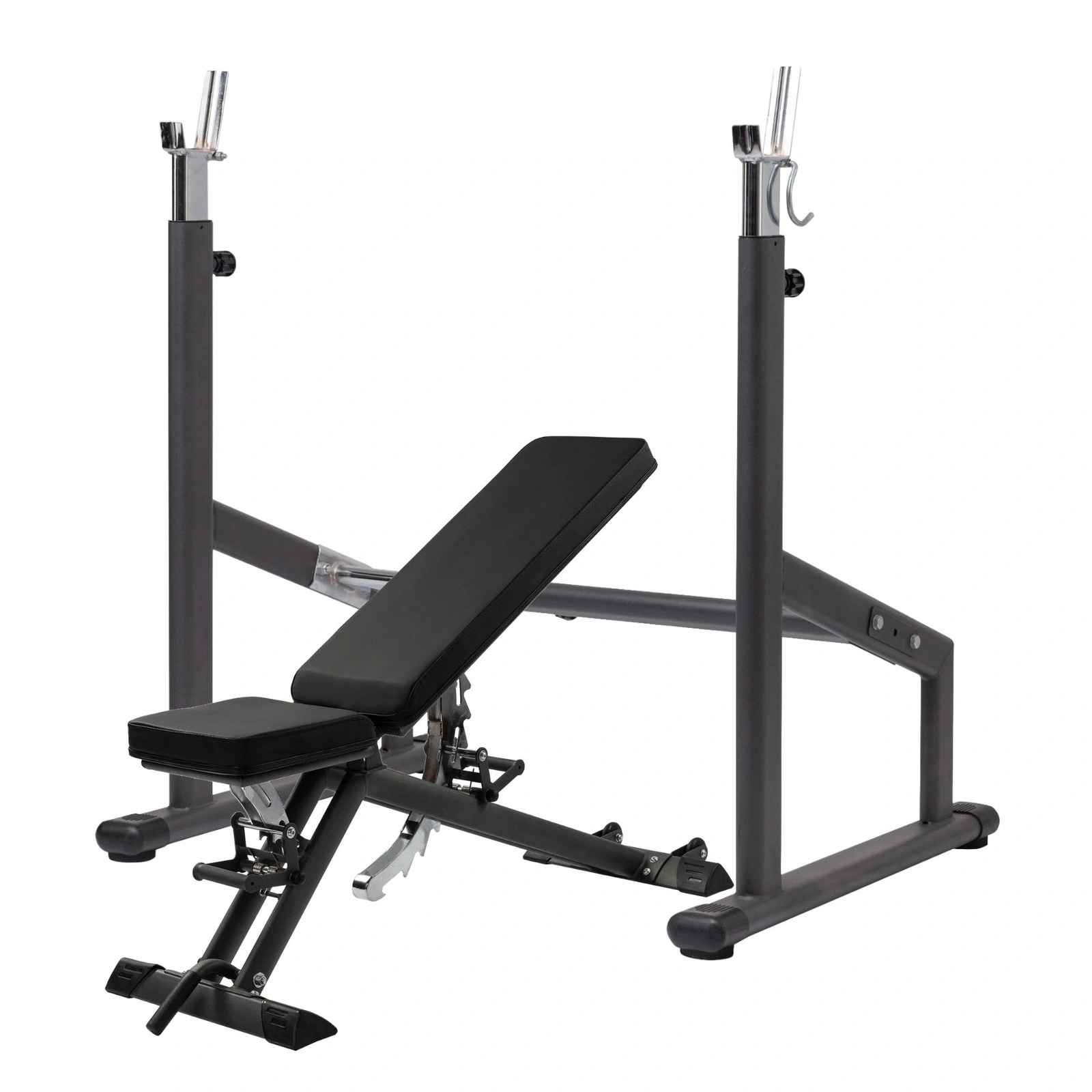 - Dodatkowe haki bezpieczeństwa - zabezpieczają sztangę przed przypadkowym zsunięciem się z uchwytów.